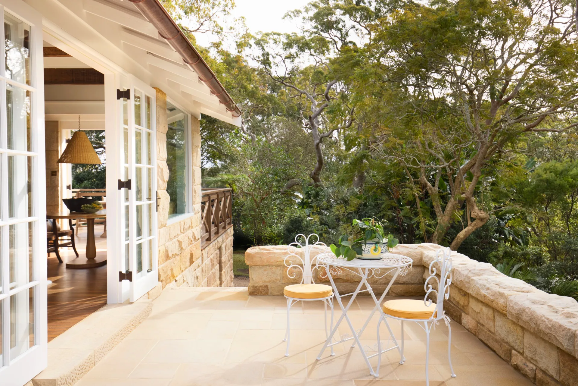 Windows and trims painted Dulux Lexicon Quarter. Furniture, stylist’s own. Sandstone flooring, True Stone Design. (Photography: Prue Ruscoe | Styling: Olga Lewis)