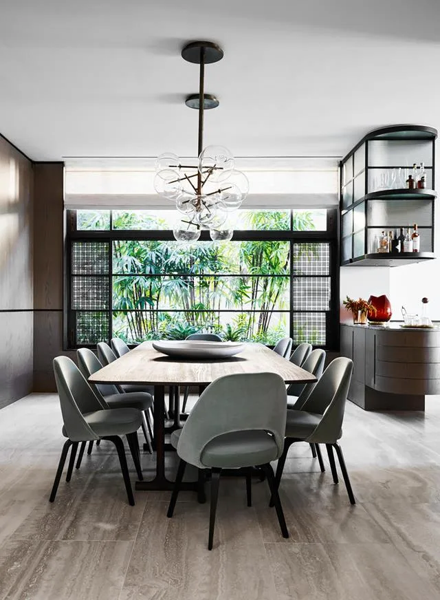 Creating a coherent connection and simplifying the levels in this Sydney home was the first step in enhancing its charm and facilitating easy family living. The formal dining area is for contemporary and timeless with its chic furnishings and colour scheme.