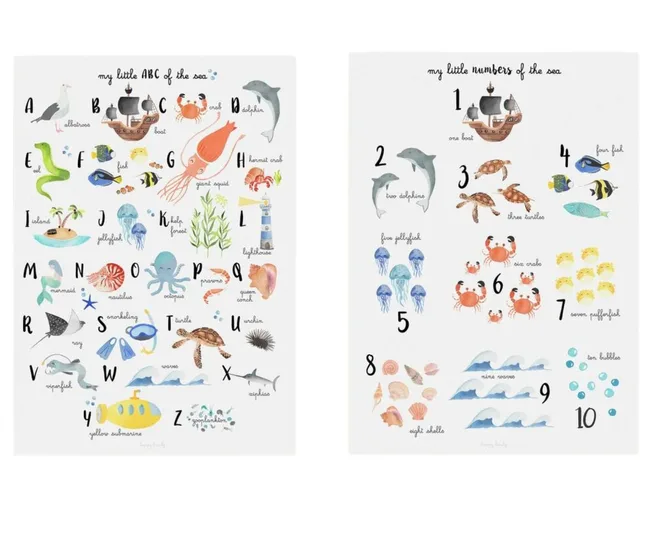 Ocean Alphabet and Numbers Poster, from $45, Etsy