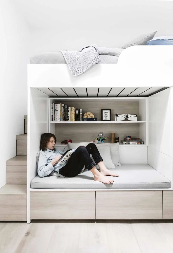 Space matters Space under a beautiful raised bed has become a book/reading nook in Nikki Yazxhi’s Sydney home by Nina Maya.