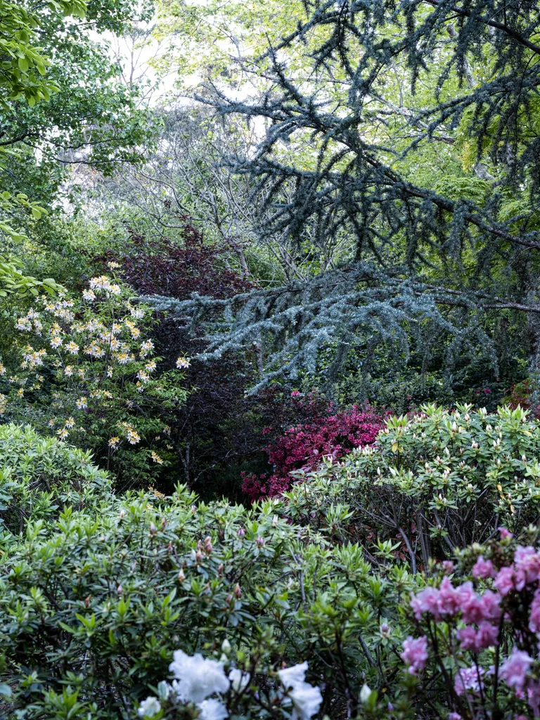 With such a large area to work with, Michael divided the garden into a number of zones. There’s the Parkland, where established blue spruce trees are interspersed with the above-mentioned mass-planted beds of azaleas, May bush and rhododendrons.