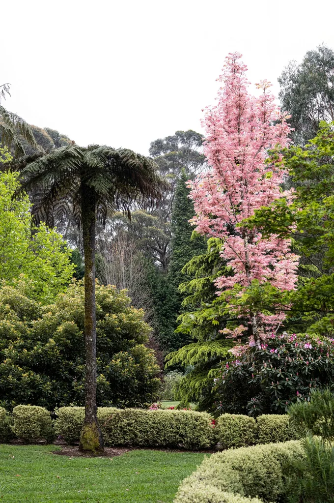 The Parterre is an ornate area of Korean and English box hedging accessed by a laburnum covered arbour, while the Paisley Garden is named for the shape of its garden beds full of deciduous azaleas.