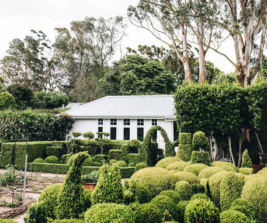 On open days, patrons young and old sit under the avenue of pleached oaks and elms. You see them on the Viewing Pavilion overlooking the 10,000 buxus plants clipped into all manner of evergreen shapes, but you lose sight of them as they slip through ornate doors set into a thicket of glossy viburnum. Children play in the Edible Garden, where topiarised olive trees and hedges of kaffir lime create secret hollows, or you’ll find them running through fragrant fields of lavender.