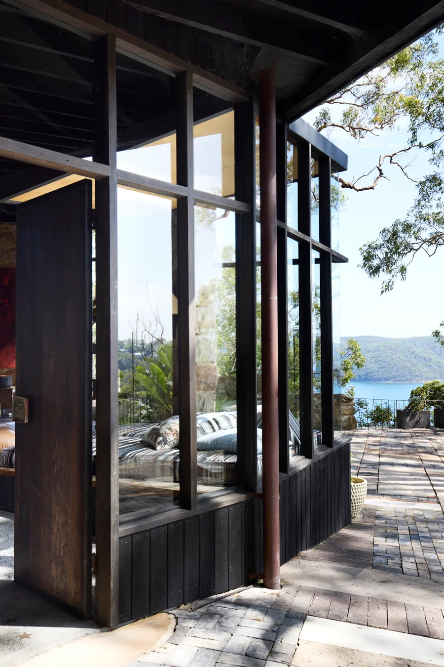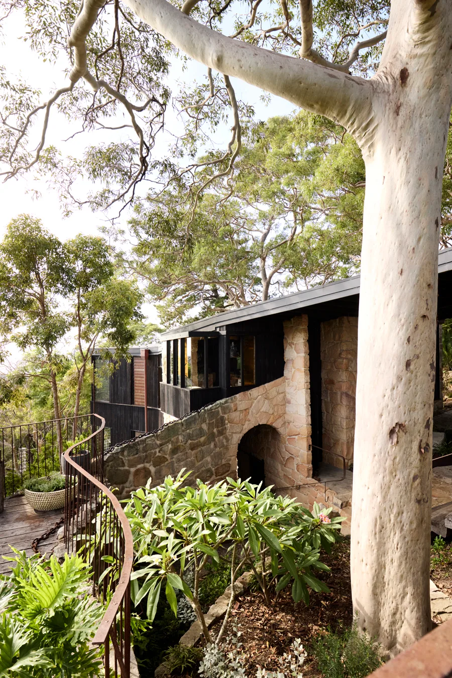 A rare architectural alchemy occurs when site, house, owner and architect align in deeply meaningful ways. Babylon House, perched on an escarpment on Sydney’s northern beaches, is such a case – its spectacular 280-degree water views, ancient rock shelves and towering angophoras creating a naturally dramatic stage. Built between 1952 and 1958 by architect Edwin Kingsbury, the original house was a bohemian experiment; majestic curved four-metre stone walls in single-skin masonry and a bowstring truss in the ceiling expressed with tectonic simplicity were bold propositions of their time.