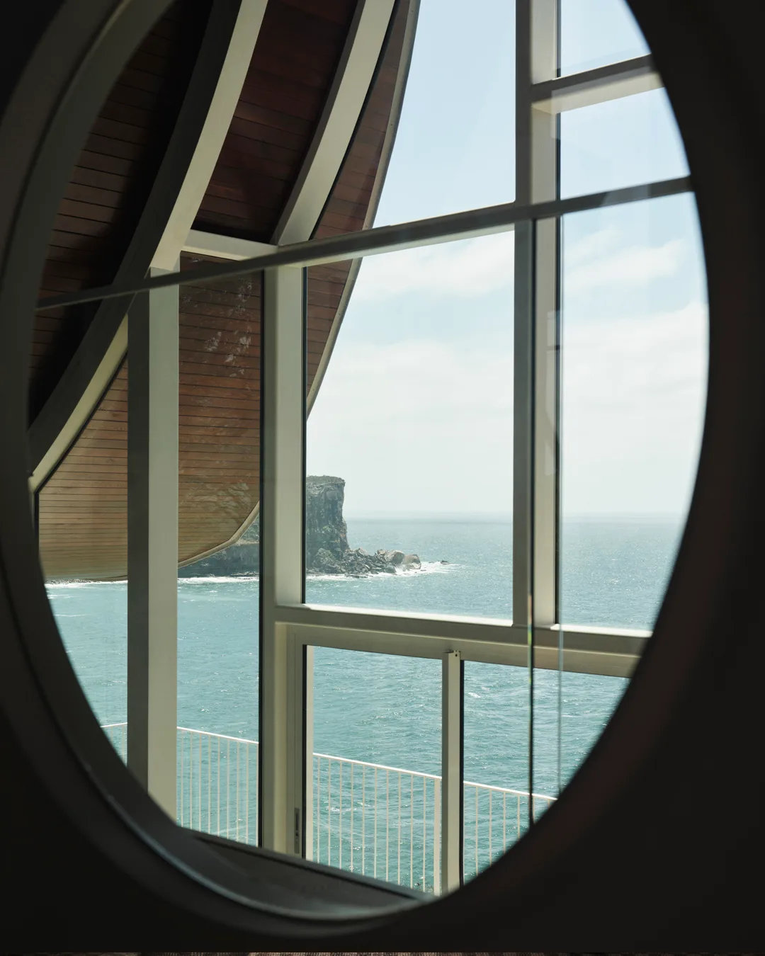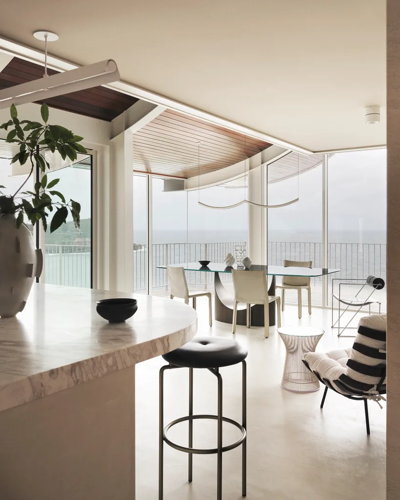 “The architecture makes a big statement and it was important to keep the integrity of the building intact,” she says. “We didn’t want to come in and change everything, but at the same time it was a bit overwhelming. So, rather than compete with it, we adopted a simple materials palette that hinted back to the nautical narrative but in a quieter way. Our philosophy was refinement over reinvention.”