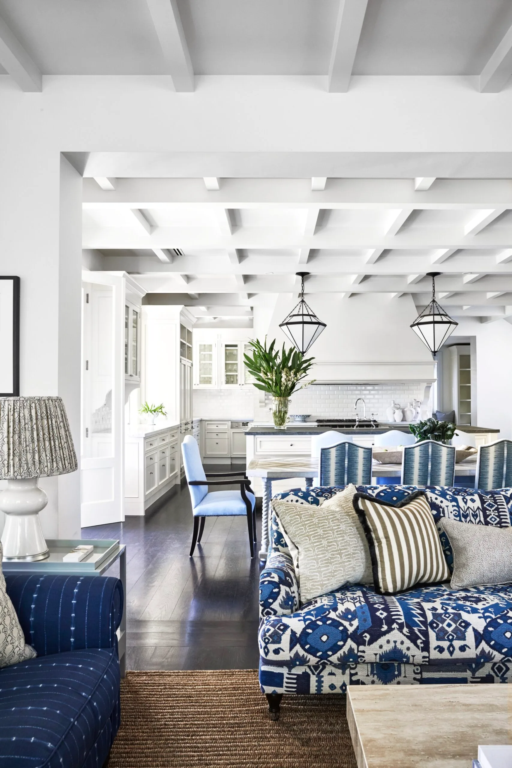 “It was important that the furniture be generously scaled, inviting and substantial within the large rooms. Textiles had to be layered and beautiful but also durable enough to withstand the demands of busy family life and the happy chaos of entertaining.”