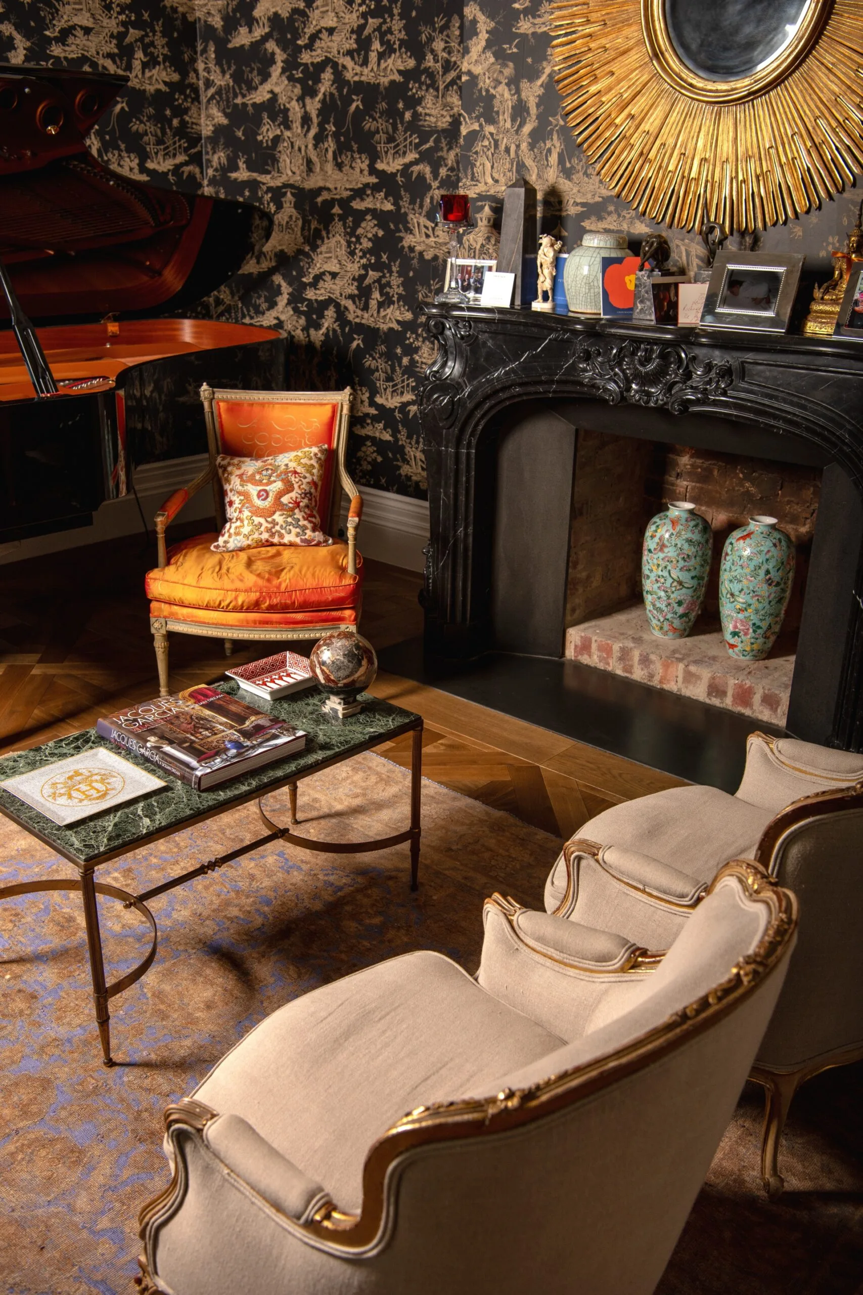 Richard’s inspiration came in many forms – “I love the work of Studio Peregalli, Billy Baldwin and Robert Kime,” he says – but he also relied heavily on the pages of magazines like Belle, Cabana and The World of Interiors. The finished project is led by drama and mood – each meaningfully layered room defines the space and its use. “A home must be livable, bearing the imprint of its owners,” explains Richard. “In a similar way, the restoration inspires a new way of living. It’s cosy nights reading by the fire one week, followed by a piano recital and elegant supper in The Pavilion the next. We love to read, so our library is at the centre of the house. It’s cluttered and built for slouchy reading, but it’s incredibly cosy and comforting. Visitors are intuitively drawn to the library, and everyone loves this room most of all.”