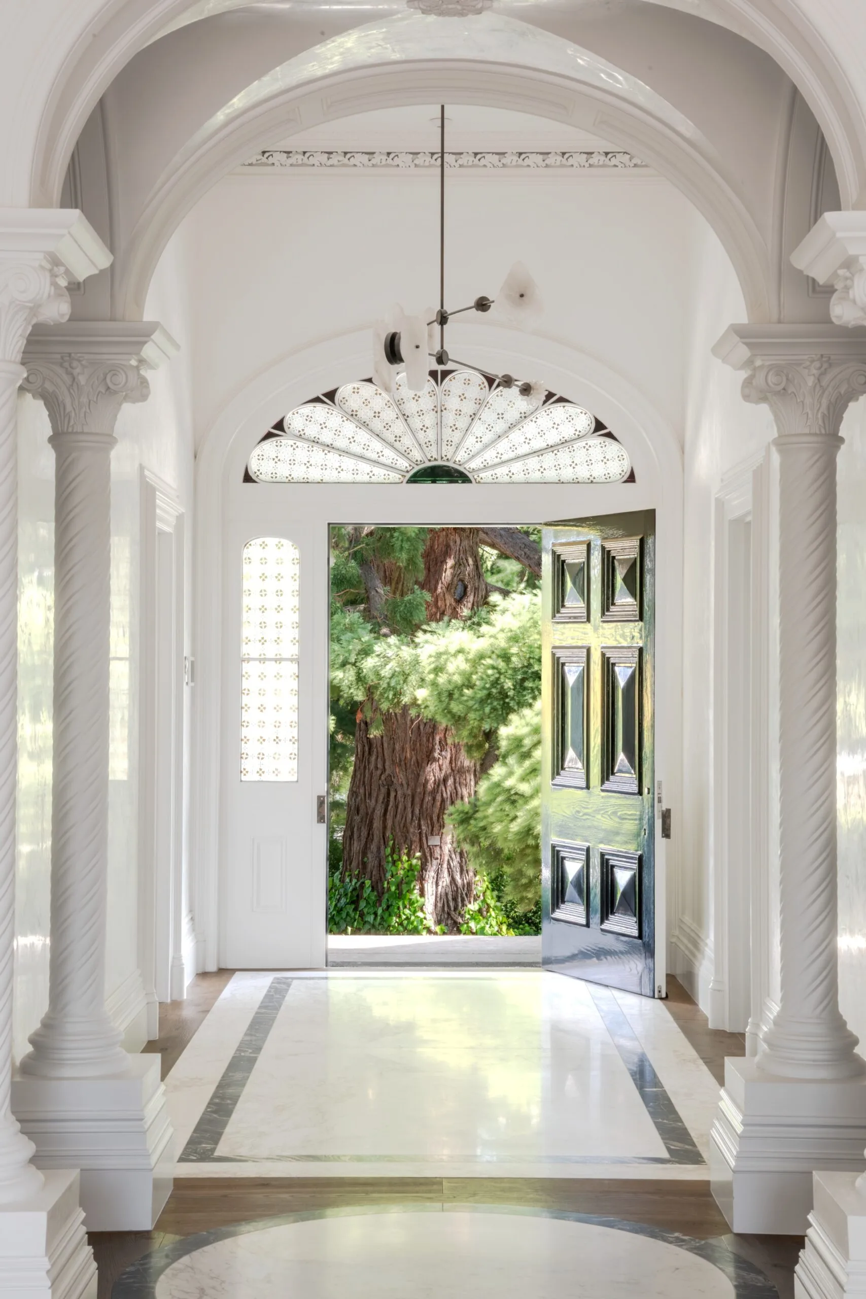 The idea was to create a mix of original Victorian features padded out with modern comfort, with a touch of high-tech wrapped up in some sharp design. Specialists were called in to restore the lime and crushed-marble stucco lustro walls, take care of the gilding and wallpapering and repair the intricate original tessellated tiling, while the new floors needed a team with different skills to encase the underfloor heating in a Versailles-style pattern of European oak and install the triple-height Italian steel and glass doors. And this was all before the new rooms could be added: a modern library, dining spaces, new kitchens and butler’s pantry, an upstairs master suite, the pool and pool house, a guest house, gymnasium and an additional studio.