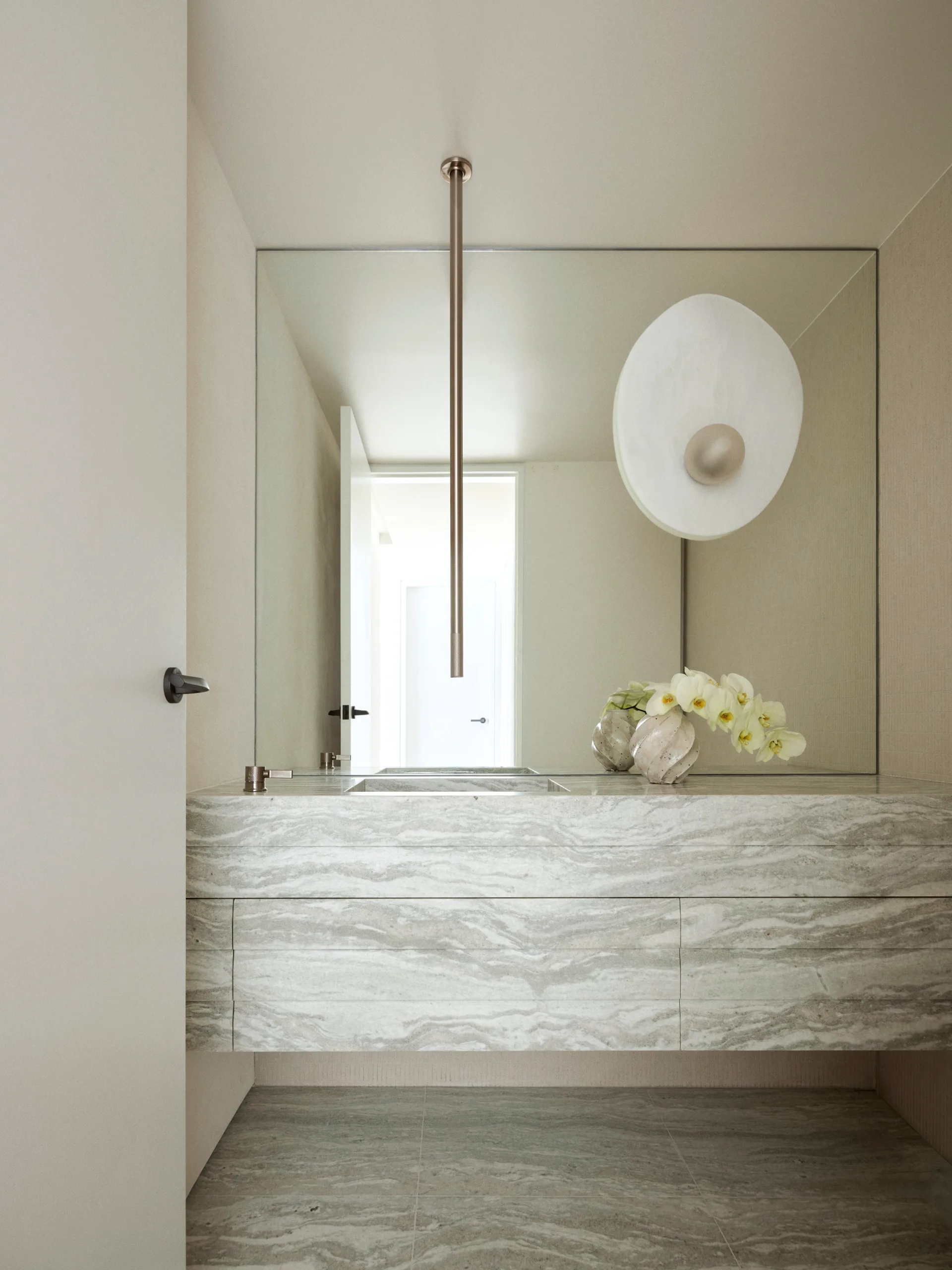 Similarly, marine-grade polished stainless steel and bronze patinas used throughout add a strong nod to finely detailed hardware similar to that of a nautical vessel. Can you nominate a favourite room or element? Inspired by our clients’ love of travel and many visits to Istanbul, the steam room shower with views of the harbour is undoubtedly a favourite space.