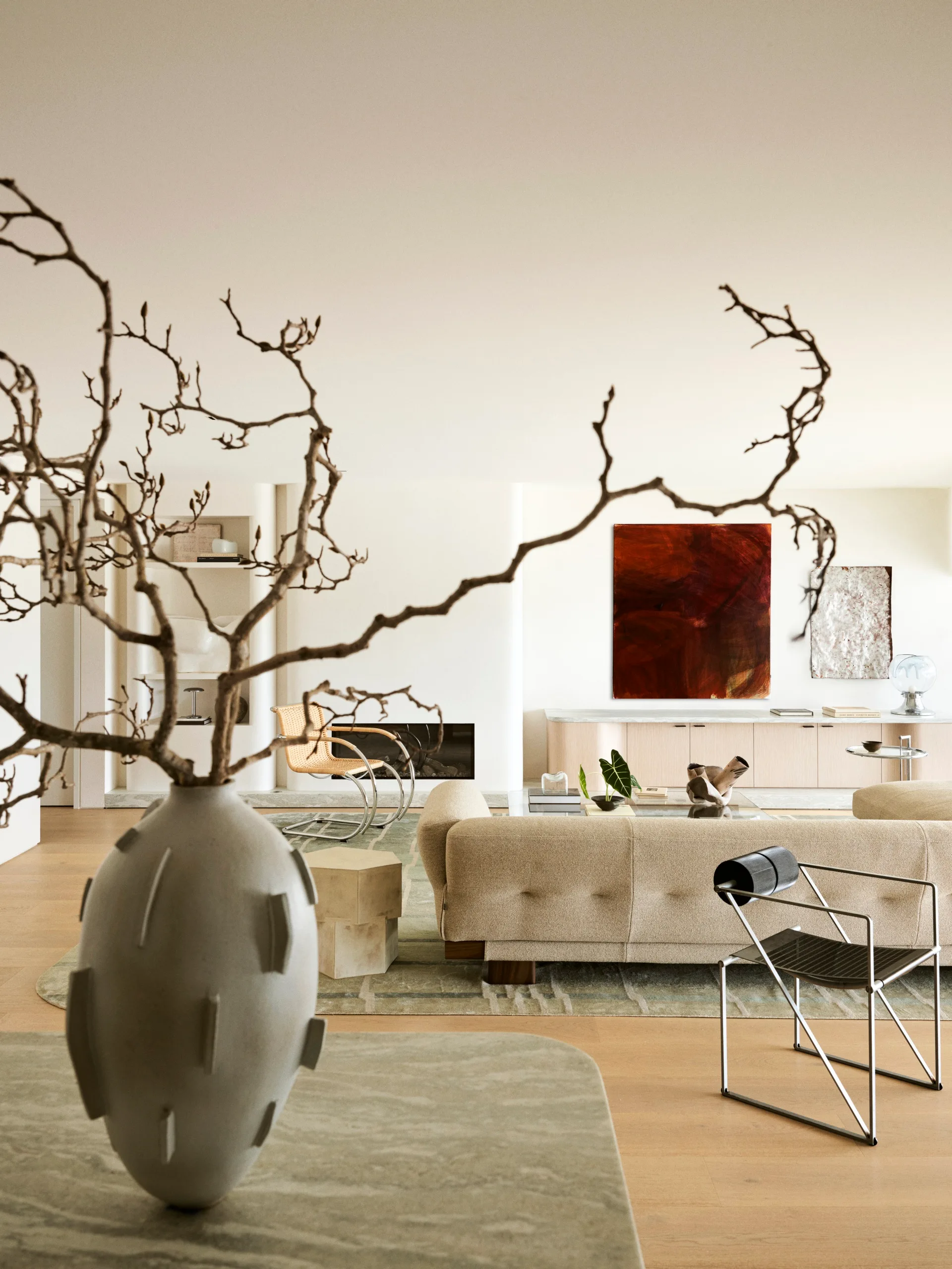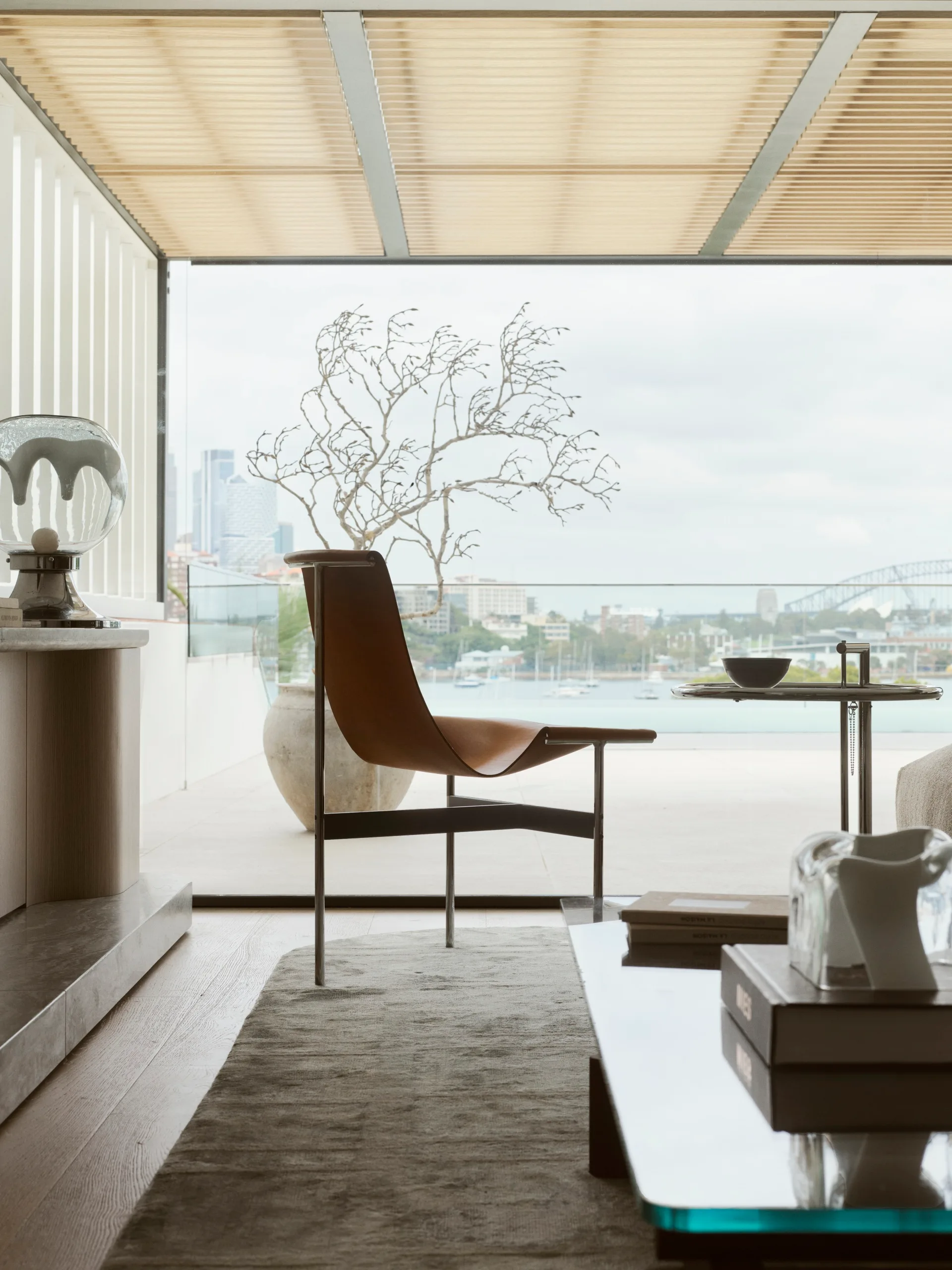 What was the starting point for the interiors? Moving from a sizeable property in Darling Point, the owners approached us to breathe life into their new ‘forever home’ – a nearby two-level penthouse apartment with spectacular views across Sydney Harbour. The clients – a developer and an artist – wanted the home to feel calm and restorative, a space that would reflect the surrounding serenity and celebrate their outdoor lifestyle.