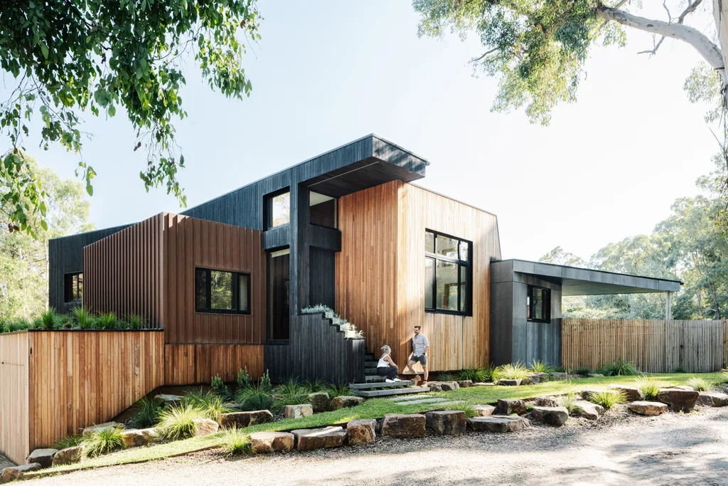 Warrandyte sits just 30 kilometres from the Melbourne CBD, on the Yarra River. While technically a suburb, the village is shrouded in nature reserves and peppered with artists’ studios, cafes and wineries. So, when a vacant 950-square-metre block near town, abutting Andersons Creek, hit the market, Jesse and Monica didn’t hesitate.