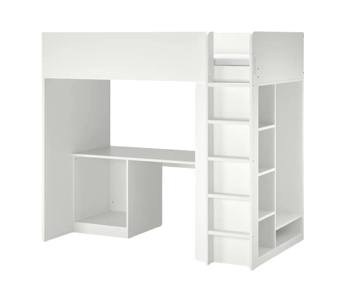 This cleverly designed loft bed from IKEA is a bed, desk, wardrobe and display shelf all in one. Finished in a classic white, this sturdy loft bed acts as a blank canvas for bright pops of colour.
