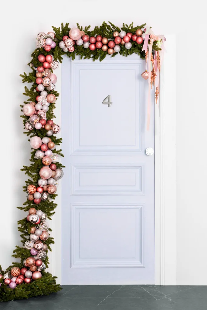 3 Drape garland across the top of the doorway and use hooks to secure to the top corners.