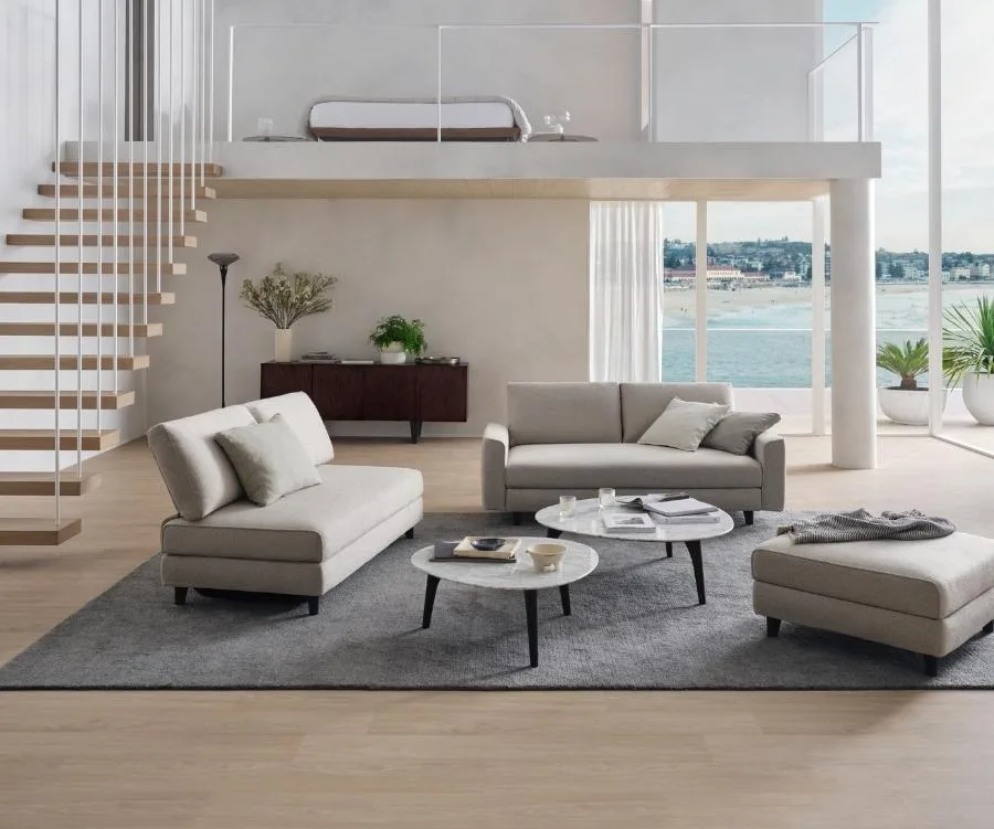 With a limited floorplan, it’s all the more important to choose modular pieces and adaptable furniture. The Delta Sofa by King, for instance, can be reconfigured to suit all interiors and settings — from an open arrangement for movie night to a cosy and luxurious guest bed. Hidden storage and movable side tables make it the perfect piece for a compact apartment.