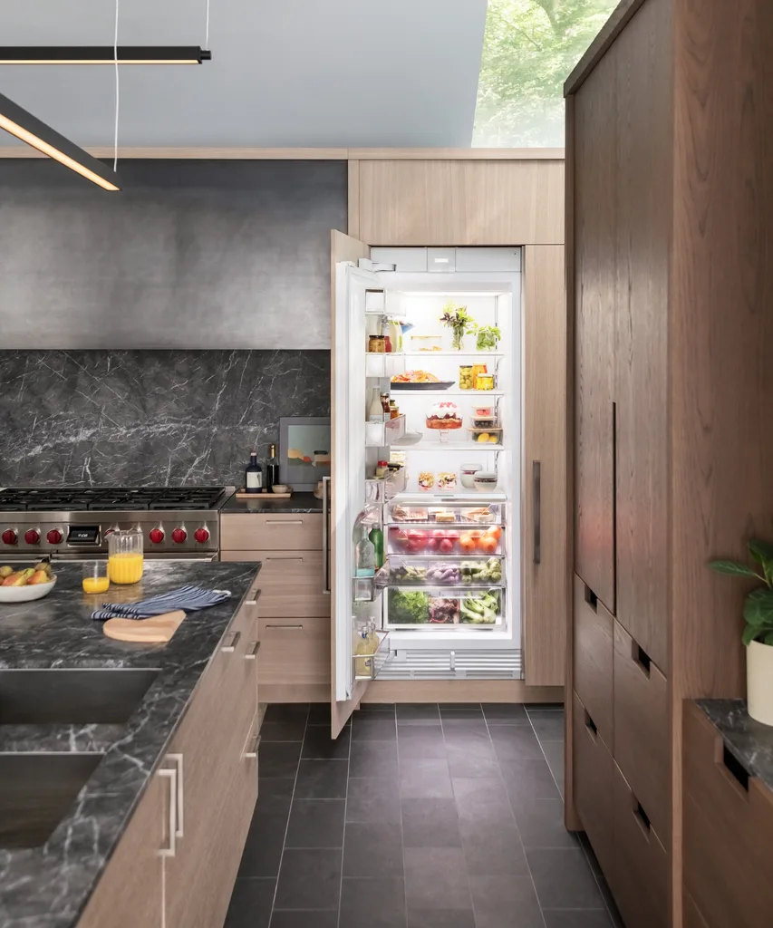 For those who want their kitchen appliances to blend effortlessly into their home’s aesthetic, Sub-Zero’s Designer Series offers a seamless integration solution. With no visible hinges or grilles, these refrigerators can be custom panelled to match the surrounding cabinetry, making them virtually indistinguishable from the rest of the kitchen. The result? A sleek, cohesive design that doesn’t compromise on performance.