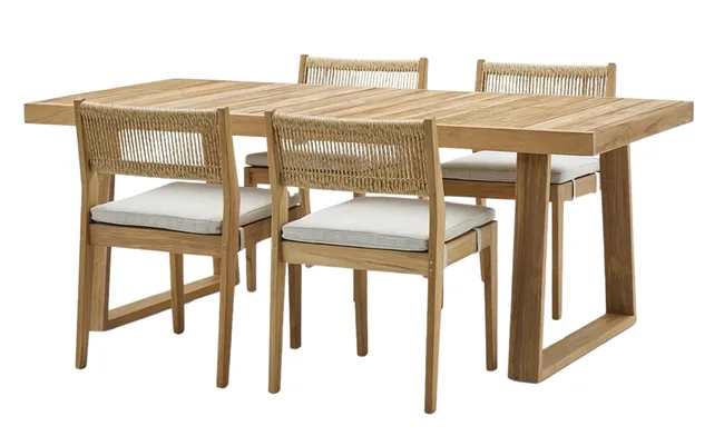 Tweak the table length, include a bench seat or just have chairs, add an ivory cover or keep things simple. The choice is yours with this outdoor dining set. The table can come in 160cm, 200cm or 240cm lengths, and you can choose 2, 4 or 6 chairs, or a bench, or both. Made of teak, this stylish, angular outdoor entertaining set will last for many years.
