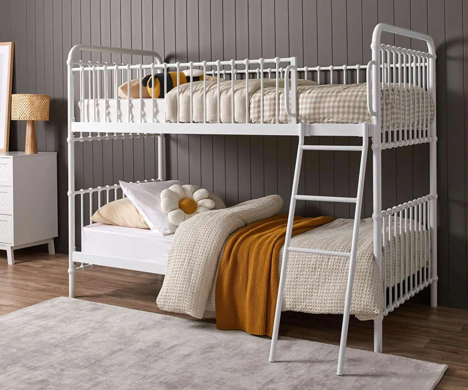 This classic bunk bed design will bring a sense of fun and adventure into your children’s bedroom. Whether you have an unexpected guest or need a bit more space, its versatile design will be a staple in the bedroom for years to come. We love the sleek profile of this one from Mocka that features a powder-coated frame with a whimsical vintage flair.