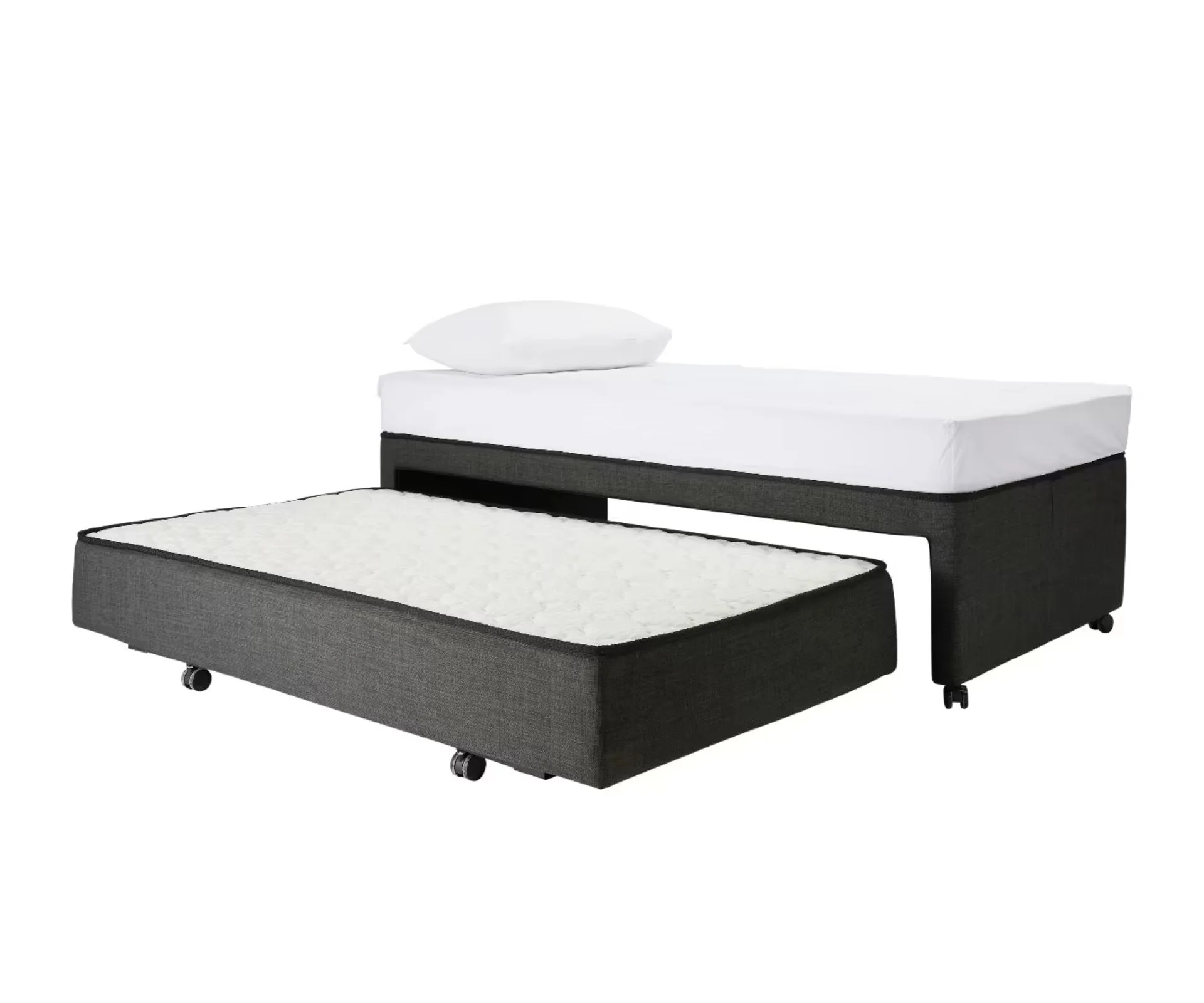 This trundle bed base from James Lane is a great option for the guest bedroom. It features fold-up legs that elevate the trundle mattress to the same height, allowing you to make two separate beds or one large bed.