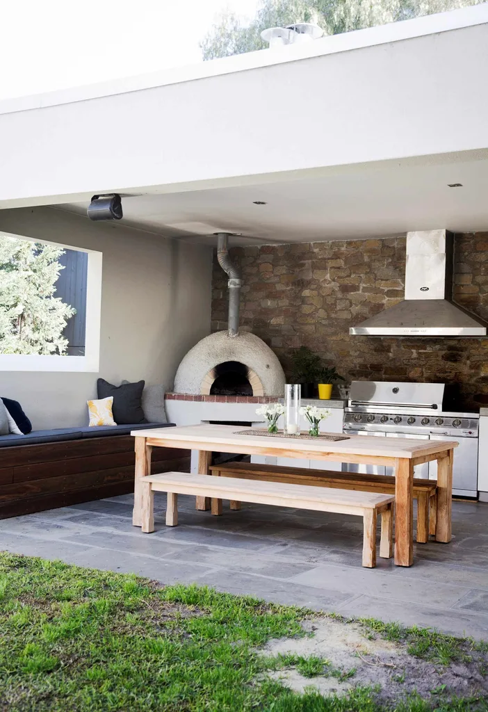 If you decide on an outdoor spot, make sure it meets your local council’s setback requirements (i.e. the distance of the oven from a property line or a structure). Also, to maximise its use, consider a location that’s at least partially protected from the elements.
