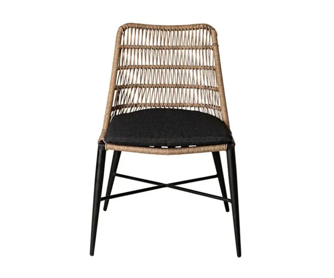 Coupling cool timber with commanding black accents, this rattan dining chair is a true statement. Highlighting clever craftsmanship, the intricately woven backing gives this chair a delicate and light touch.