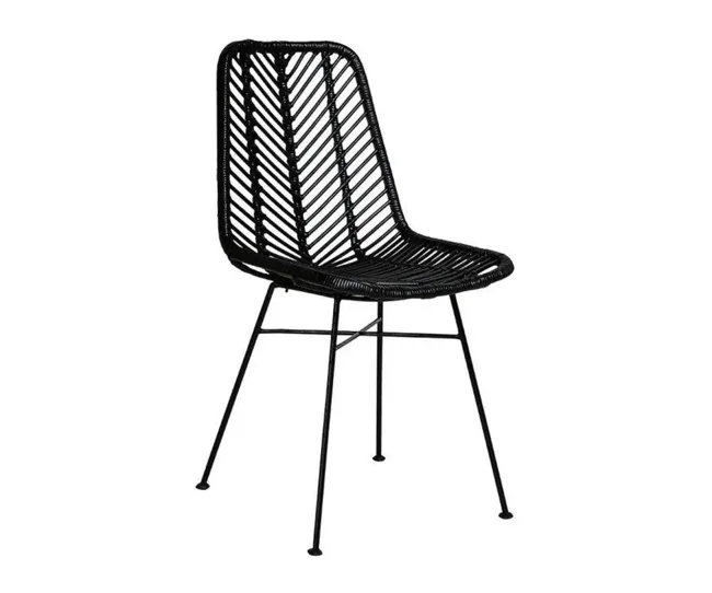 Sleek and chic, this geometric, jet black dining chair blends into bold interiors. Combining its bohemian feel with strong materiality, this rattan piece is highly versatile.