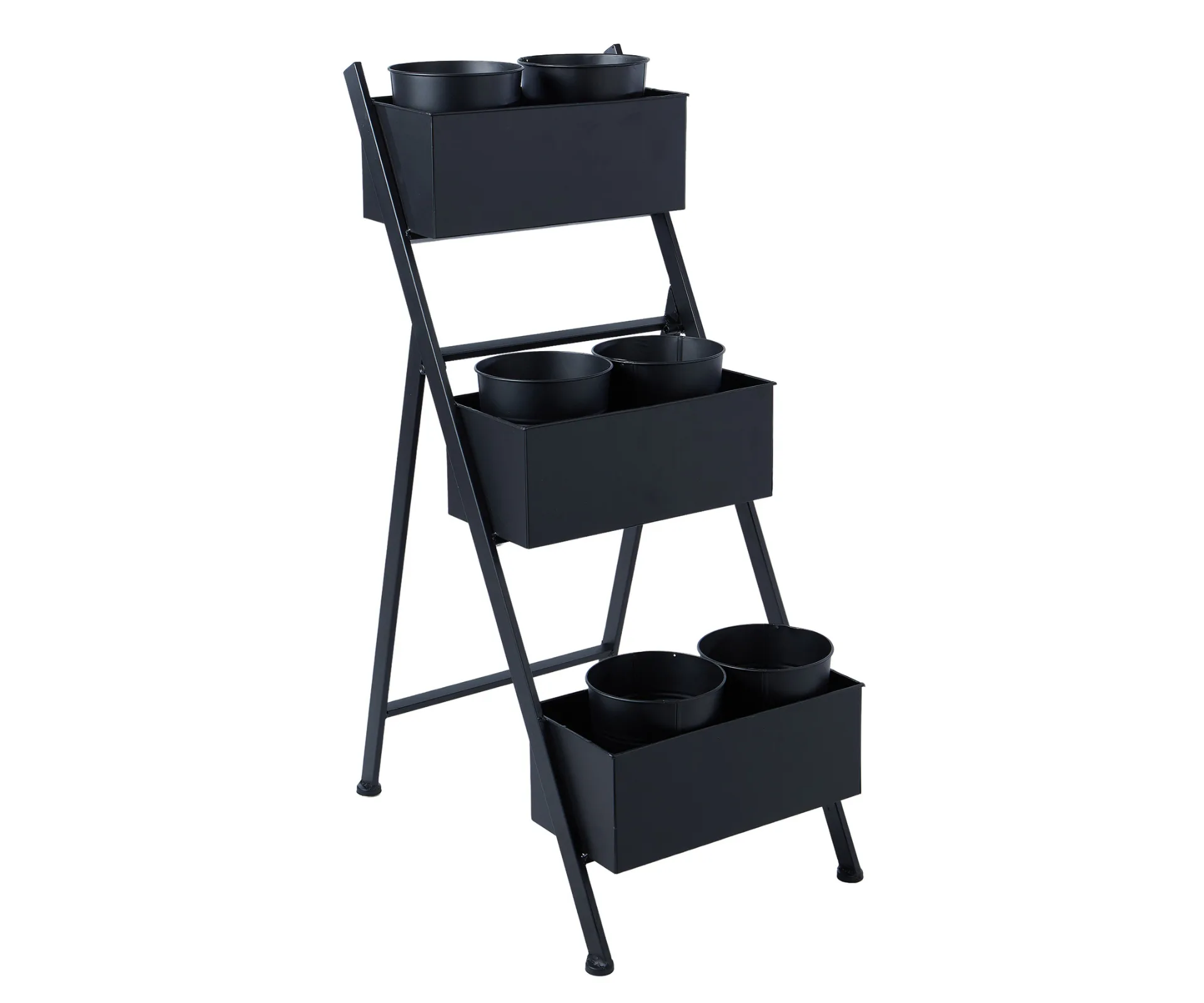 Display your lush collection of plants with this three-tiered plant stand made for both indoor and outdoor use. Anti-rust and moisture resistant, situate your assembly of plants in the backyard or patio, or place the display in your home for a more industrial tone.