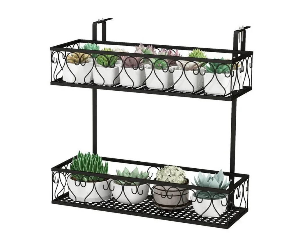 For more room for your succulents to thrive in the sunshine, this two-tiered potted plant container has two adjustable hooks that offer a changeable width to match your railing space. Perfect for outdoor use, place the plant stand on your porch, patio or fence.