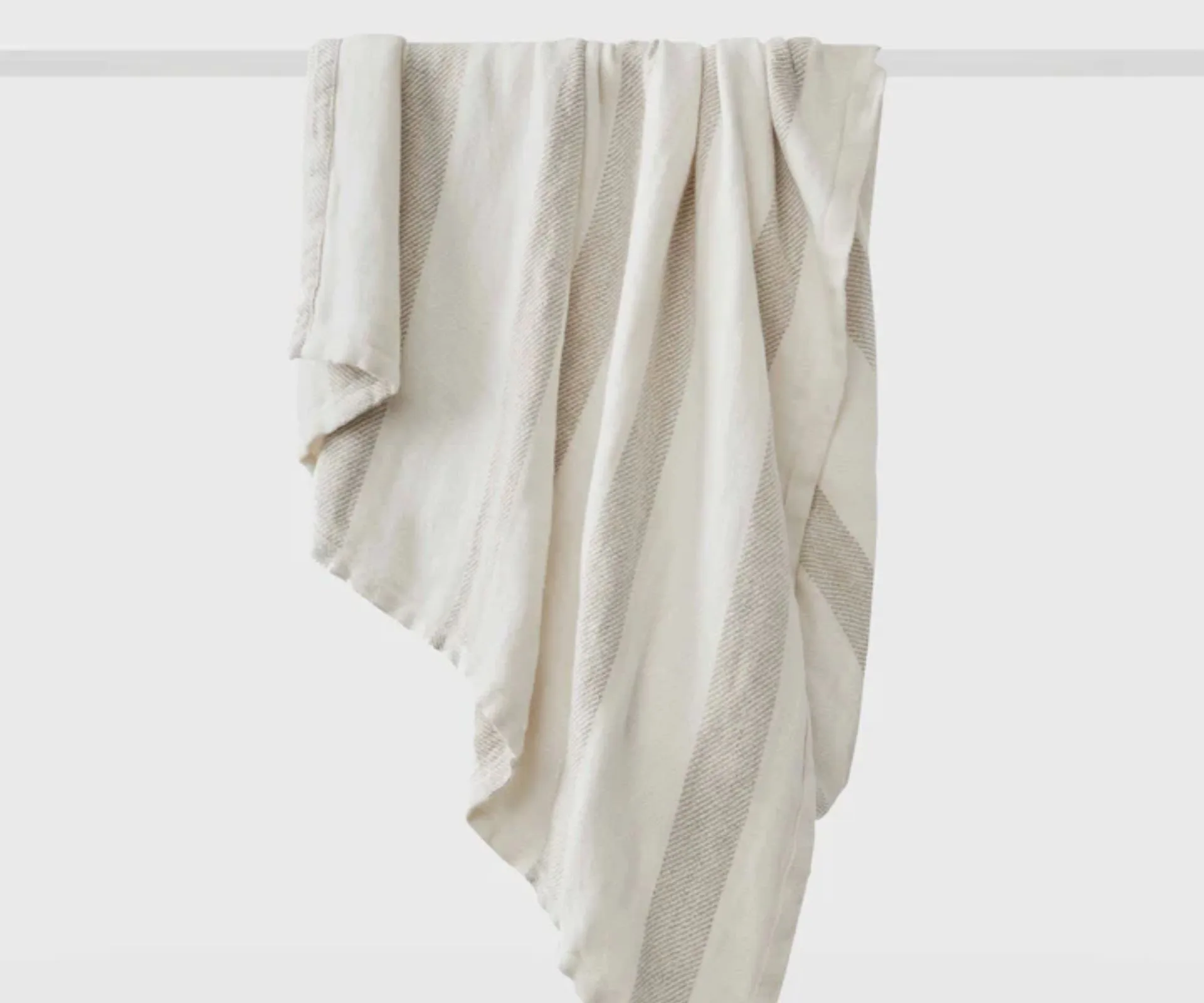 Soft and delicate, the Luna stripe throw features a timeless wide horizontal stripe design in neutral beige hues. Finished in a neat border-stitched hem, it’s a luxurious addition to the end of the bed or the couch.
