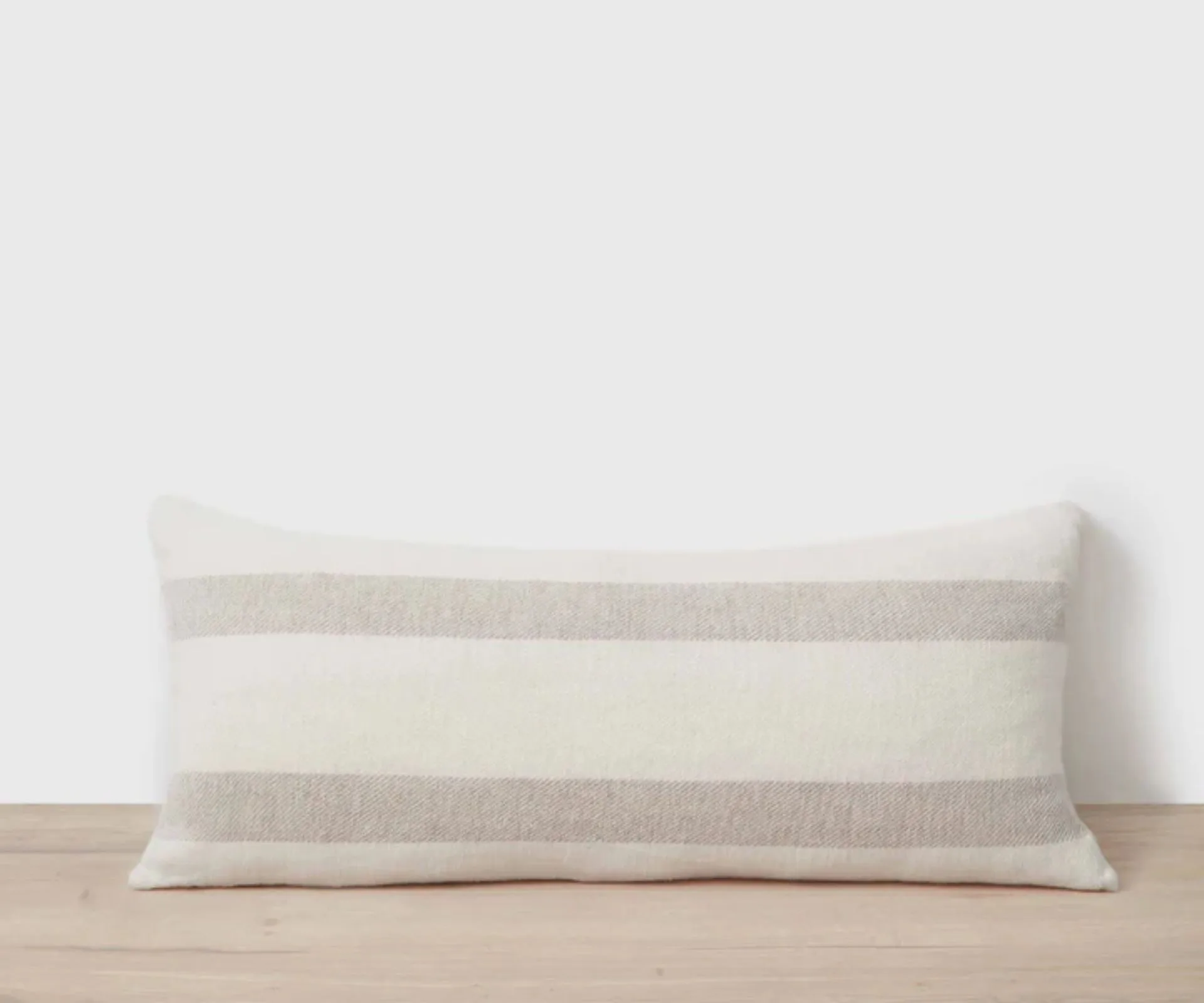 If the subtle striped pattern is not what you’re after, how about this bold option from Cultiver? The Enzo lumbar pillow can be shaped on a bench seat, sofa, or bed. Woven in Portugal with the highest quality heavyweight linen, this lumbar pillow is made to last.