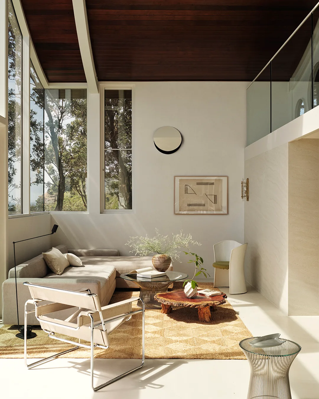 Curves have been used judiciously in the living room of this Sydney home by Three Birds Renovations, inspired by ‘modern Mallorca’.