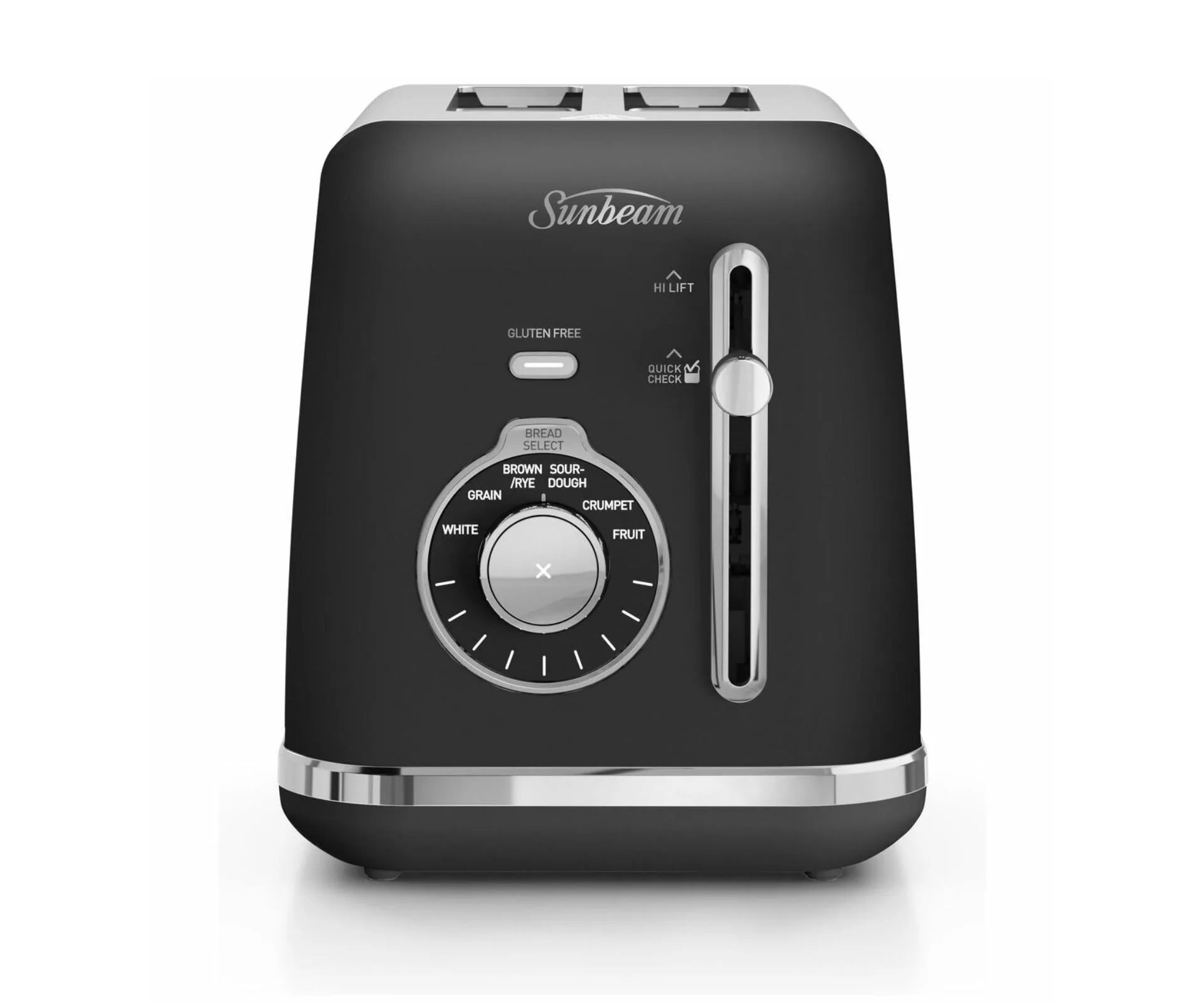 The Alinea Select toaster by Sunbeam offers six different bread settings, including a gluten-free option which tackles the varying densities of gluten-free bread. And if you’re particular about the level of browning for the perfect slice, the Quickcheck function allows you to check the browning progress without interrupting the toasting cycle.